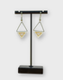 Karahkwa Jewelry - White & Gold Triangle Earrings on a drop metal hanger. The earrings are bordered with white, with gold inside, and an inner white triangle base.