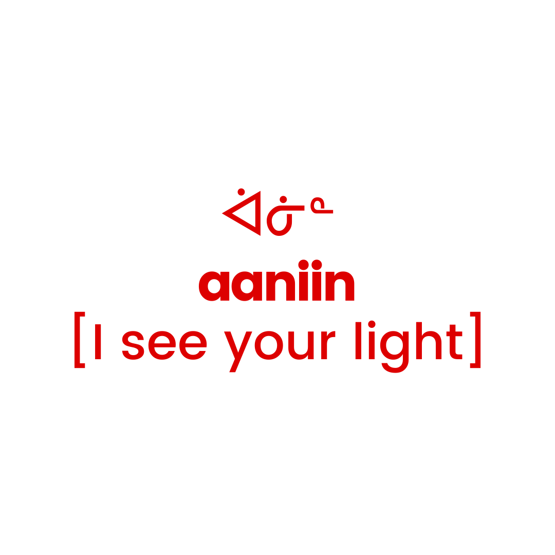 ᐋᓃᓐ syllabics write aaniin the anishinaabemowin word for "I see/acknowledge your light" or conversationally known for.. hello!